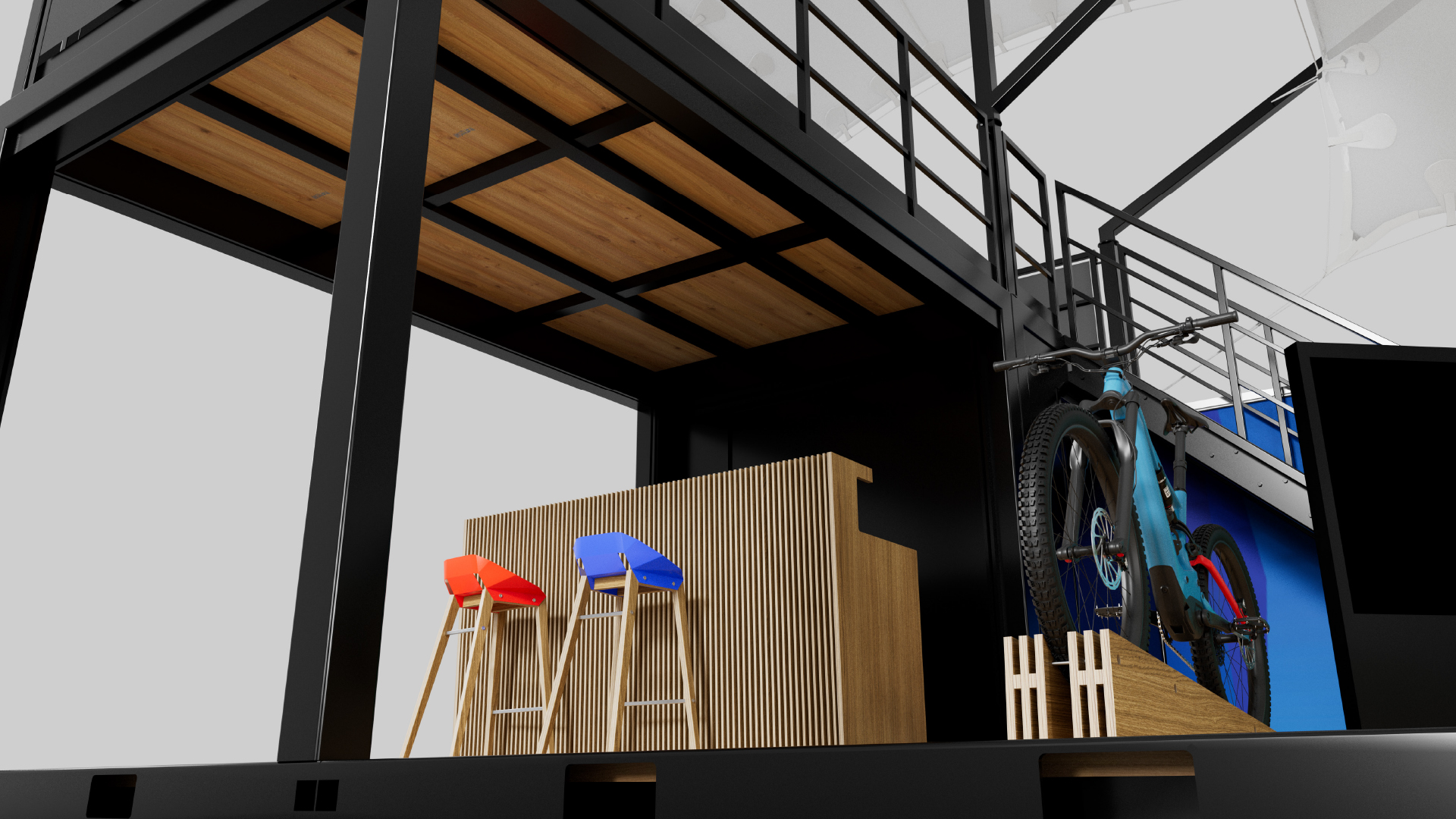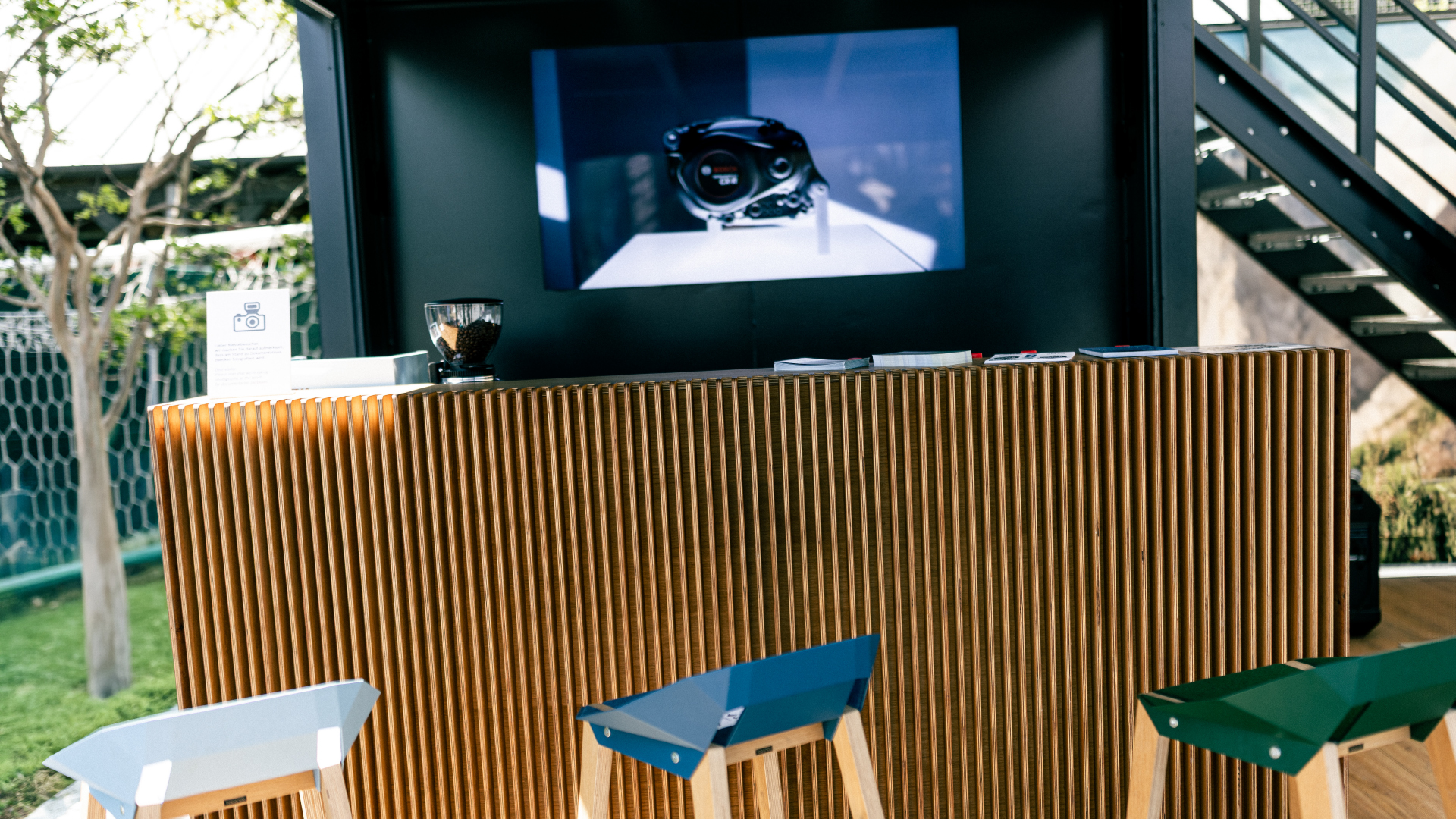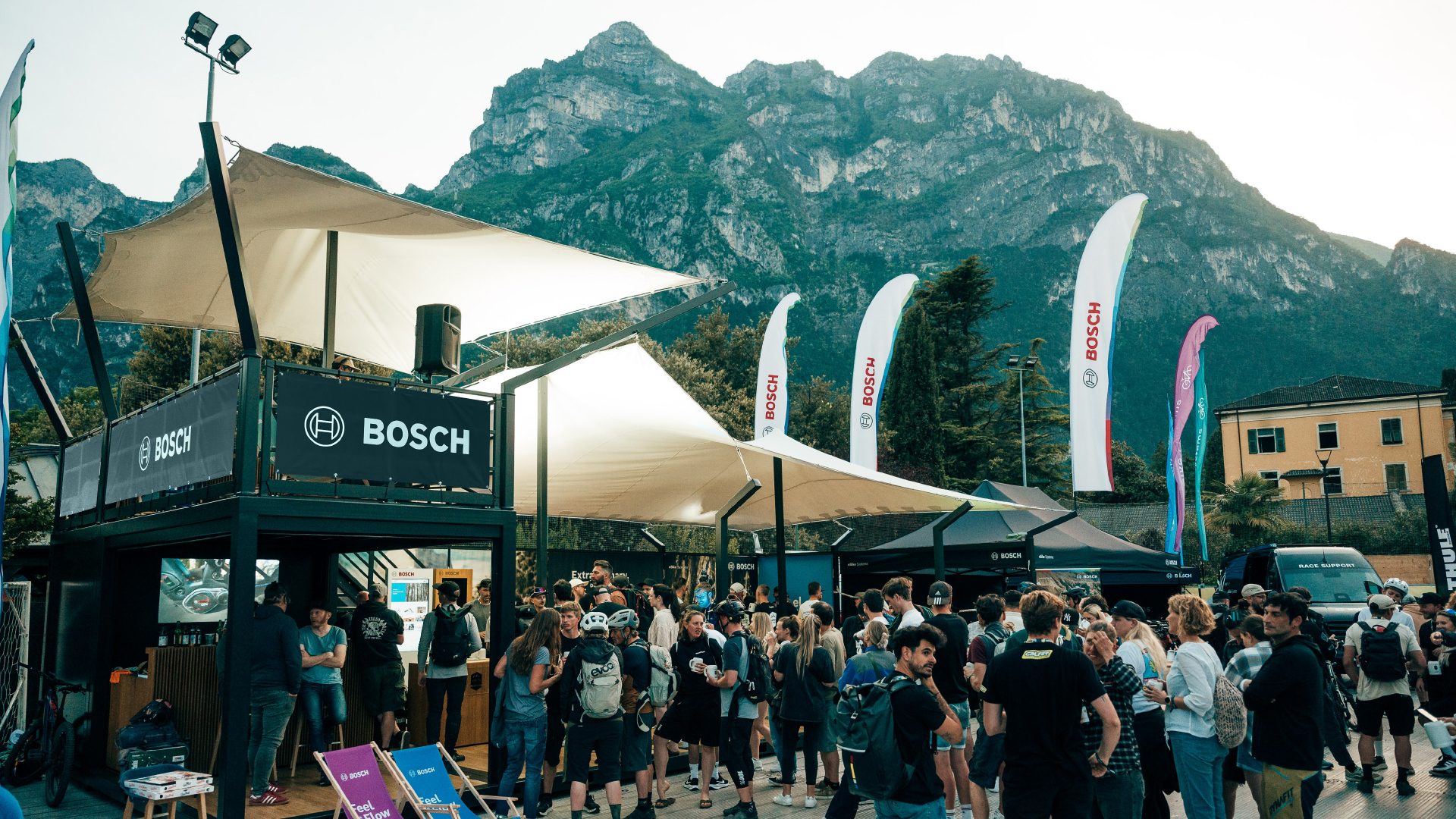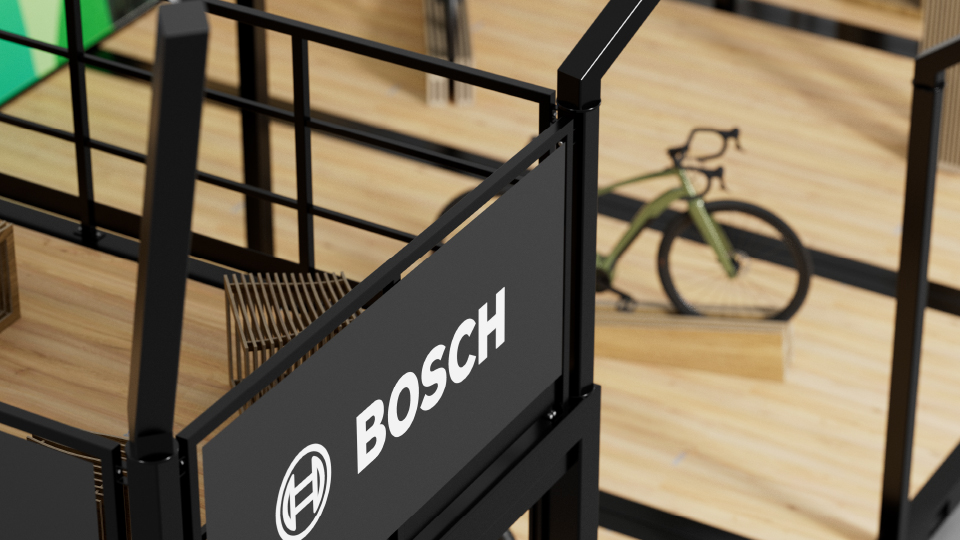 We designed an exceptional exhibition booth for BOSCH eBike Systems, setting it apart in its category. Spanning 15 x 6 meters, our modular container-like system showcased innovation. Notably, a two-storey lounge area offers panoramic views of the event, all sheltered by a custom tent roof developed specifically for this application. From the project's inception, idea formulation, and conceptualization, to supplier coordination and the final assembly of the event booth, we were integral to every stage.
