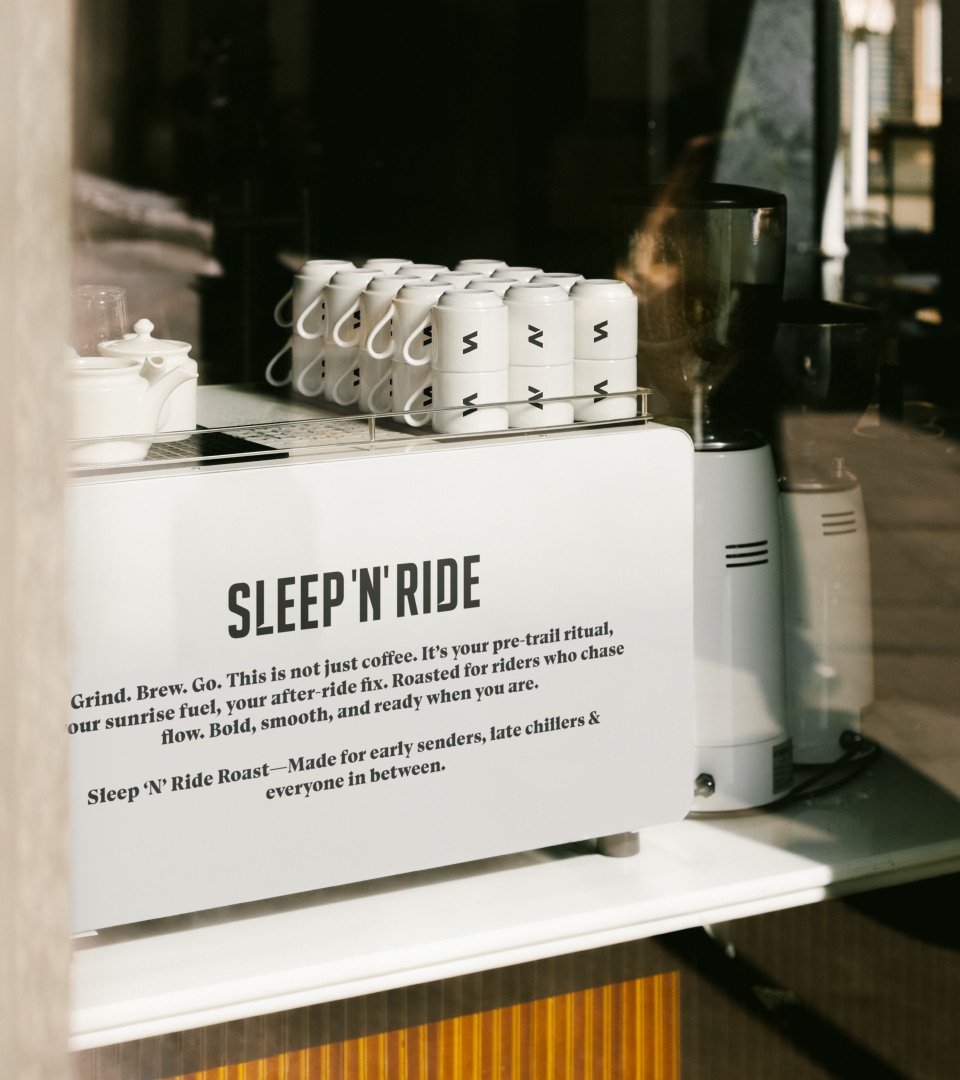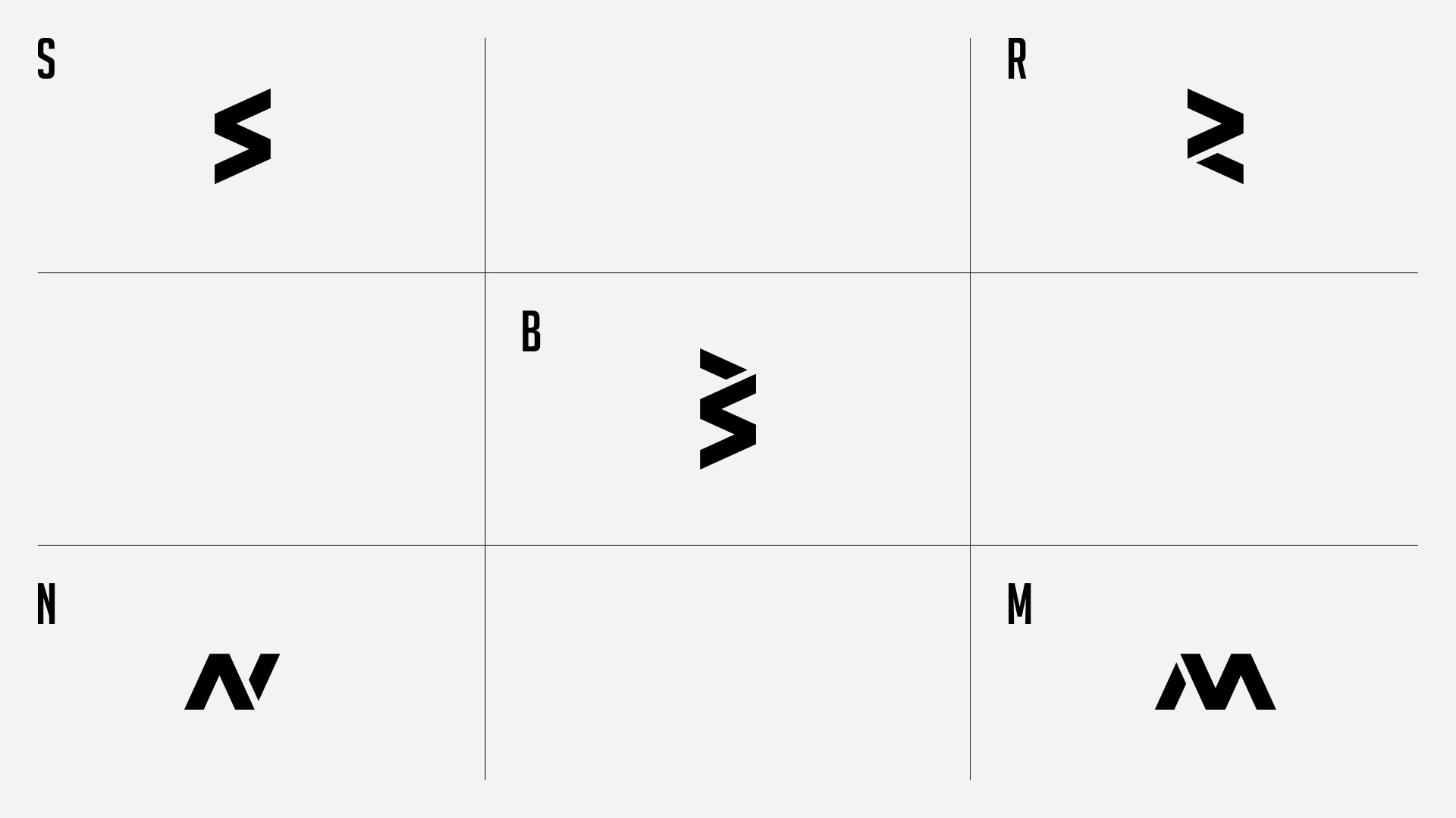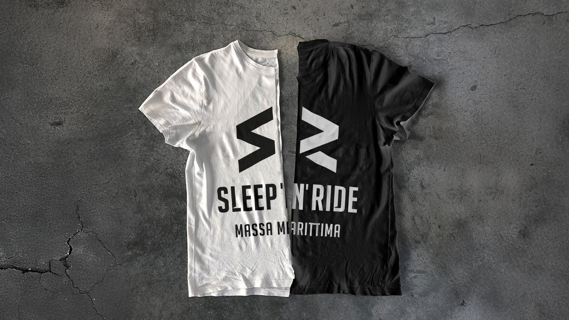 A second logo was created for SLEEP ’N’ RIDE — a new bike-friendly B&B that’s part of the same world. Here, the icon becomes a game of hidden letters: S, R, B, N, M — all emerging from the same graphic structure. With a little rotation and reduction, the system shifts: S becomes R, becomes N. The result is a sibling identity with shared DNA, ready for signage, towels, espresso cups and trail maps.