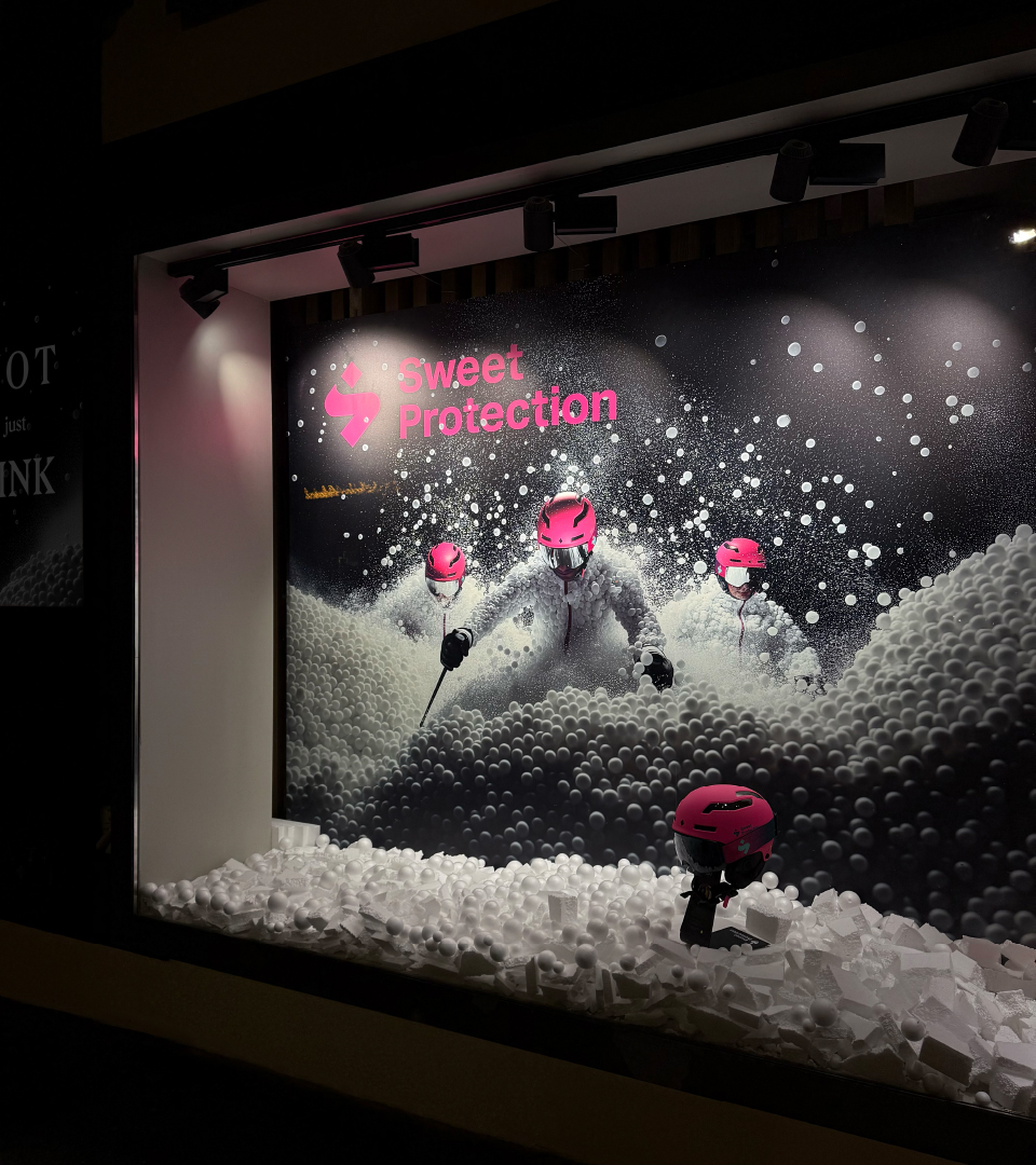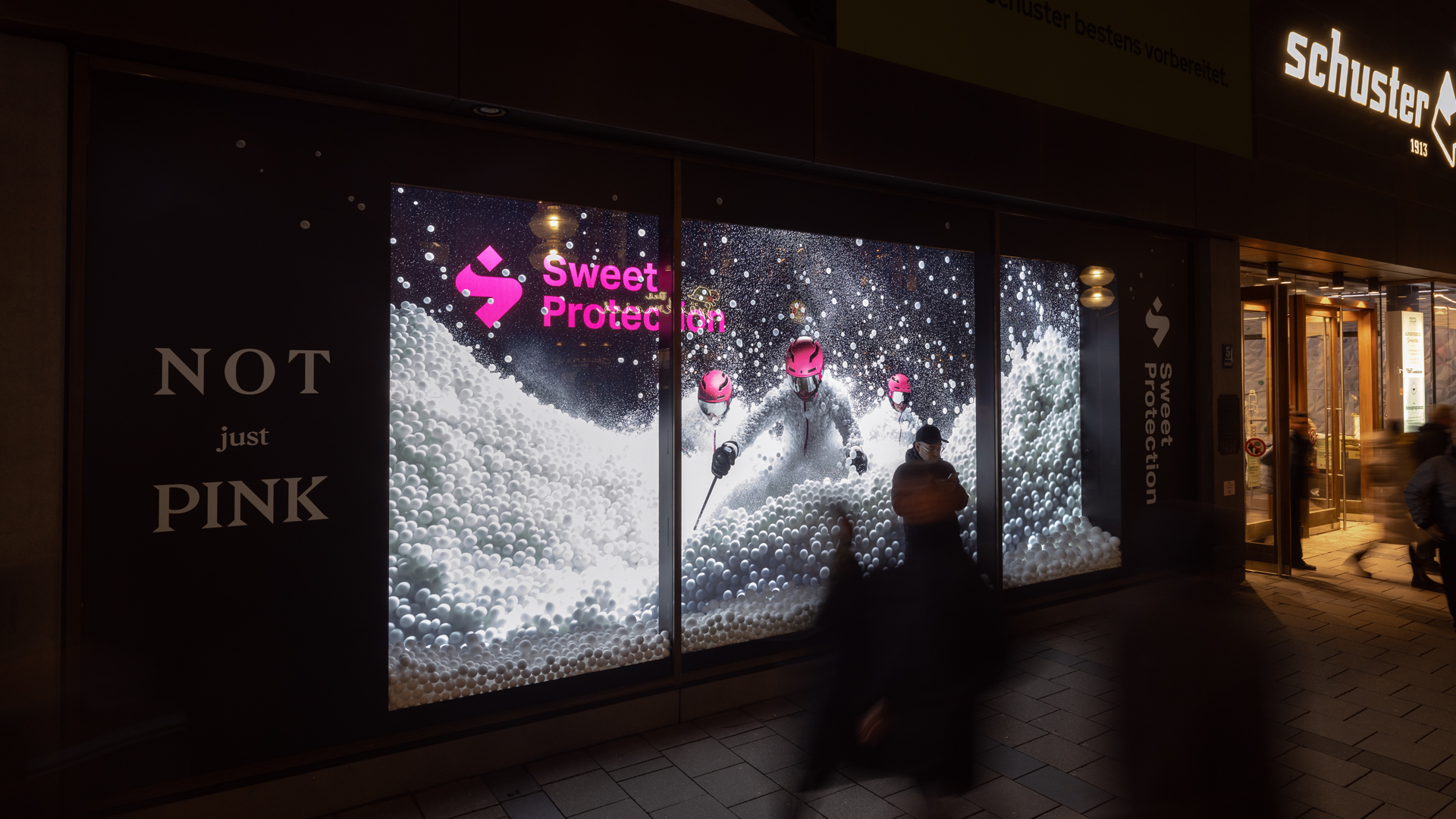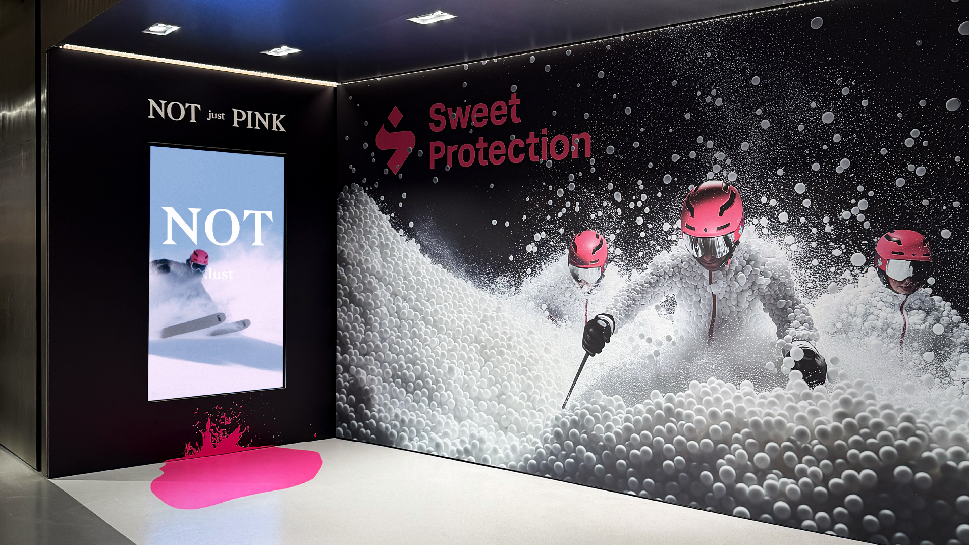 Sweet Protection wanted to make some noise in key stores across Germany and Austria — and asked us to help turn up the volume. We started with an AI-generated concept image, then brought it to life: retouching real helmets and goggles into the scene, building a playful polystyrene world to merge 2D and 3D, and even crafting custom ski suits to transform the AI skiers into physical characters. We flooded the stores in pink to make sure no one could miss it. Is this the future of skiing, or will the next trend be more toward pubic hair and pink?