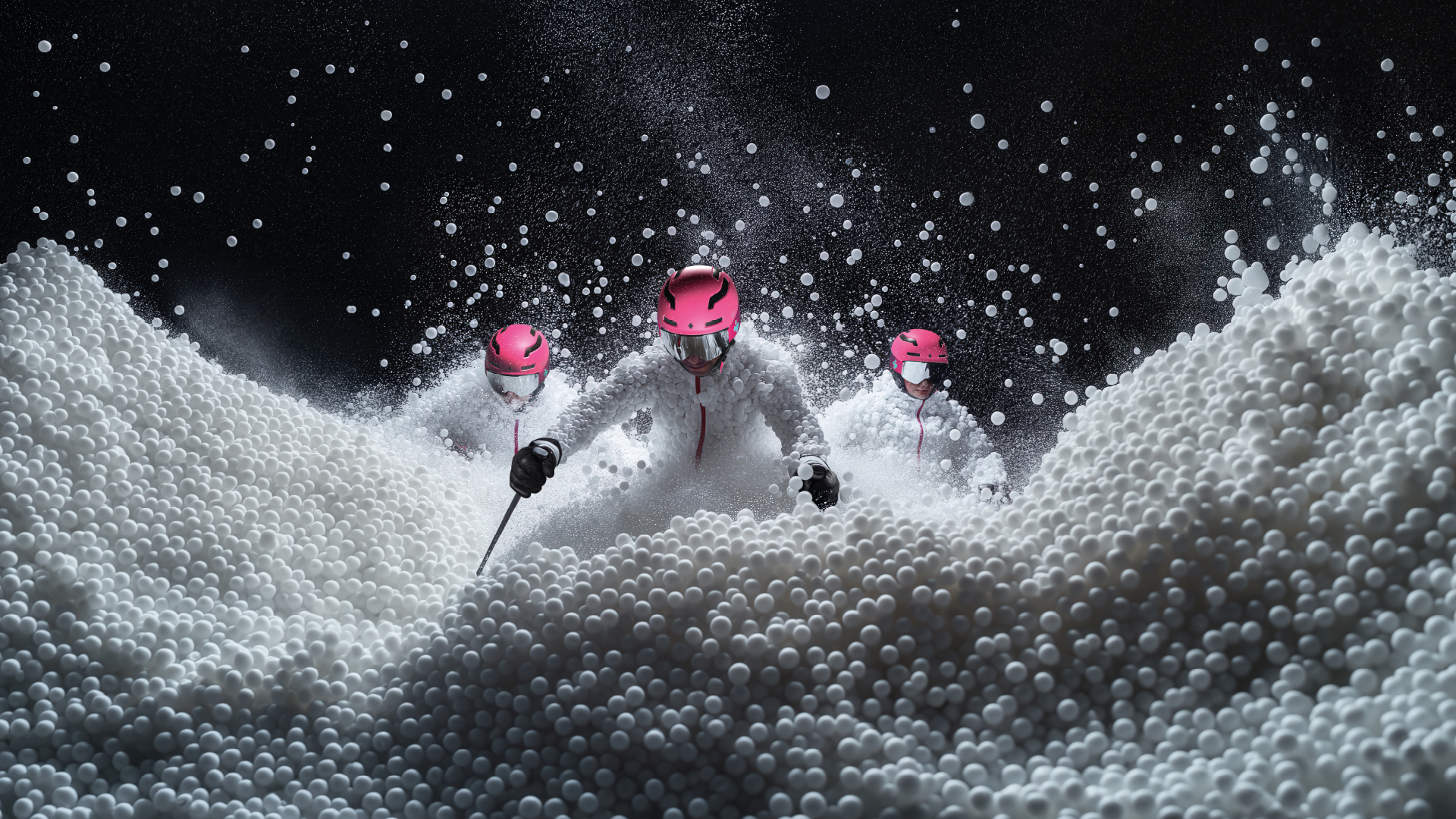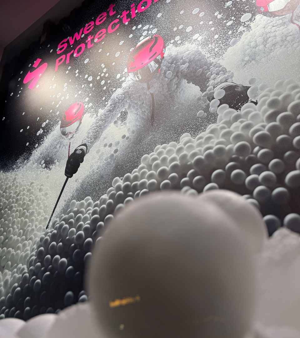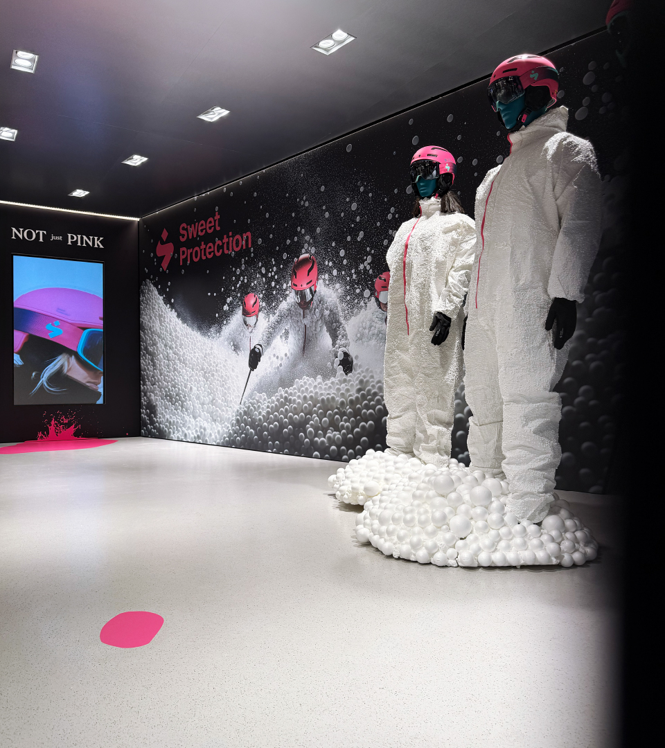 Sweet Protection wanted to make some noise in key stores across Germany and Austria — and asked us to help turn up the volume. We started with an AI-generated concept image, then brought it to life: retouching real helmets and goggles into the scene, building a playful polystyrene world to merge 2D and 3D, and even crafting custom ski suits to transform the AI skiers into physical characters. We flooded the stores in pink to make sure no one could miss it. Is this the future of skiing, or will the next trend be more toward pubic hair and pink?
